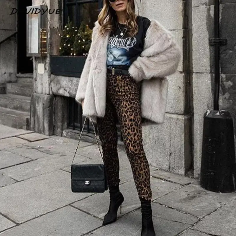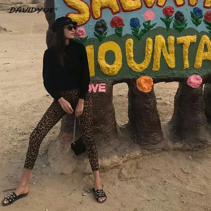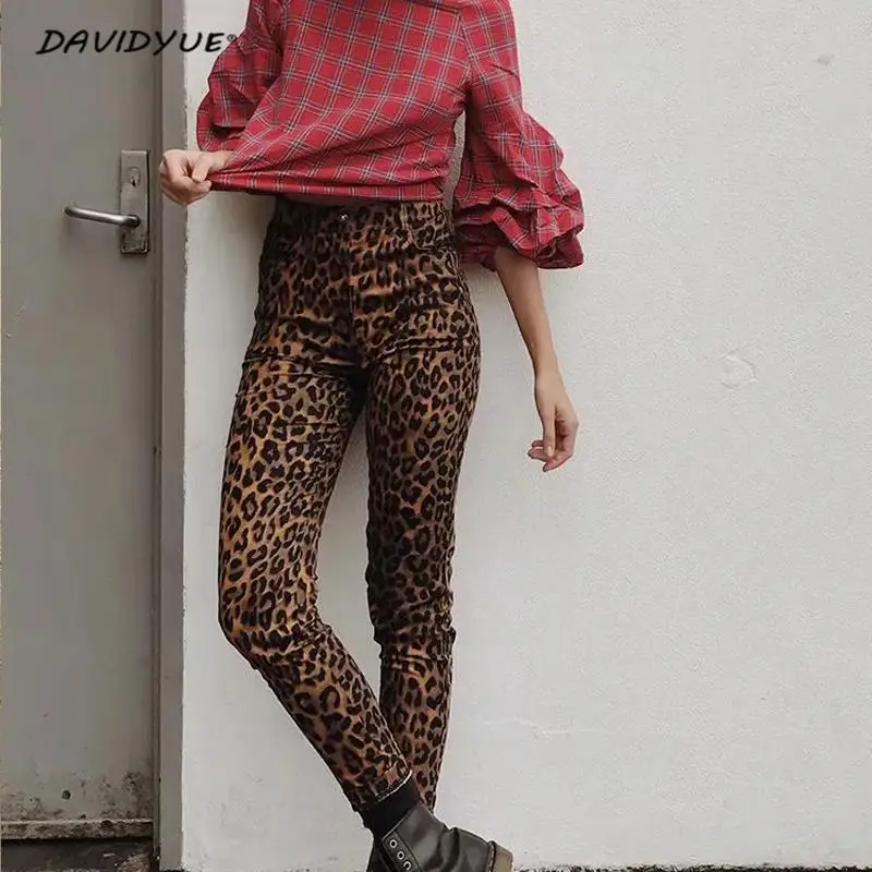 amazing Fashion Leopard print skinny jeans Streetwear female high waist jeans pencil pants jeggings Punk ro