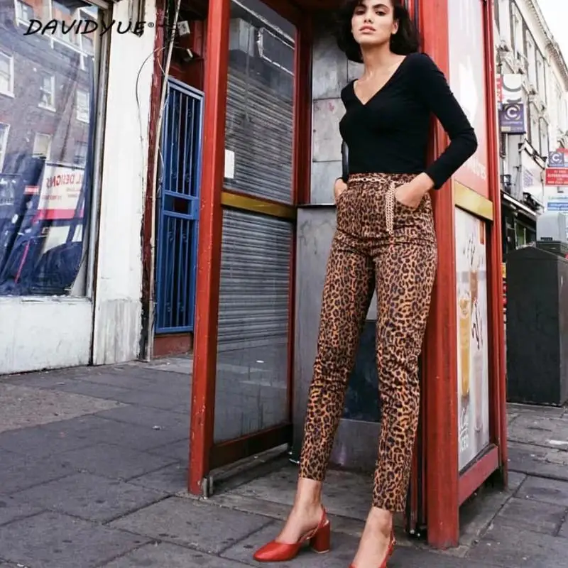 Best Fashion Leopard print skinny jeans Streetwear female high waist jeans pencil pants jeggings Punk ro