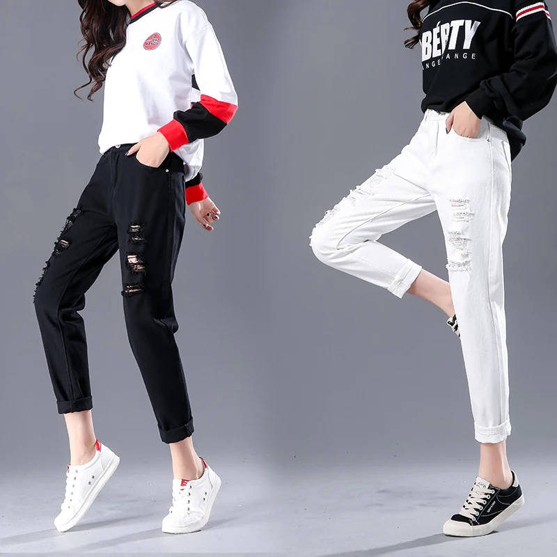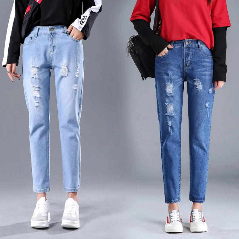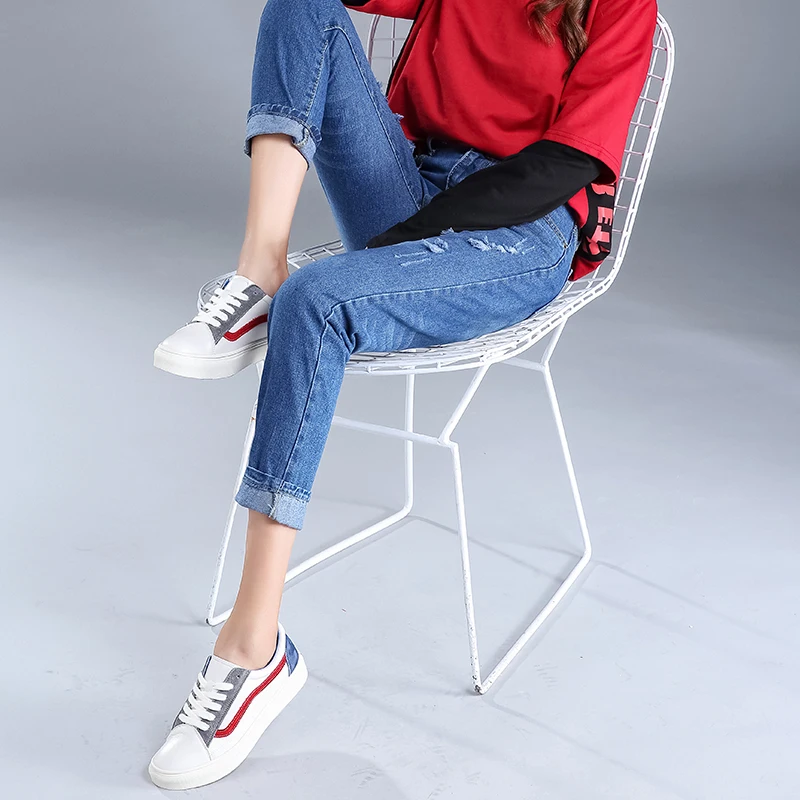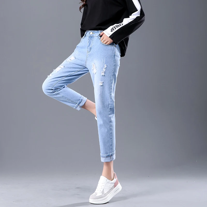 lower price Best Sellers 2019 New Original Scratched Shredded Jeans Female Cotton Ankle-Length Pants High Waist