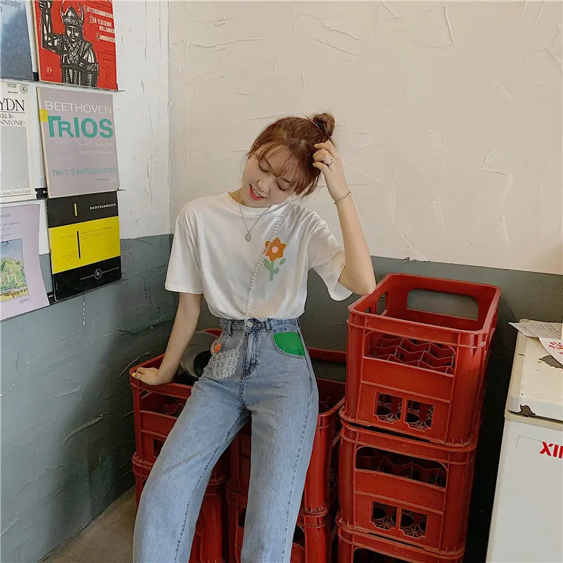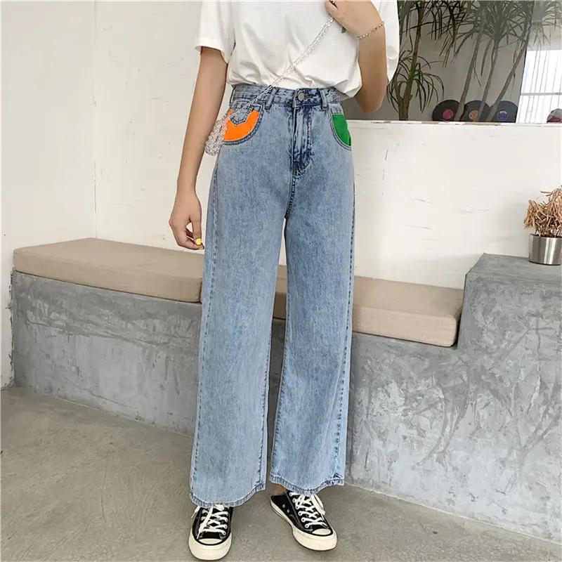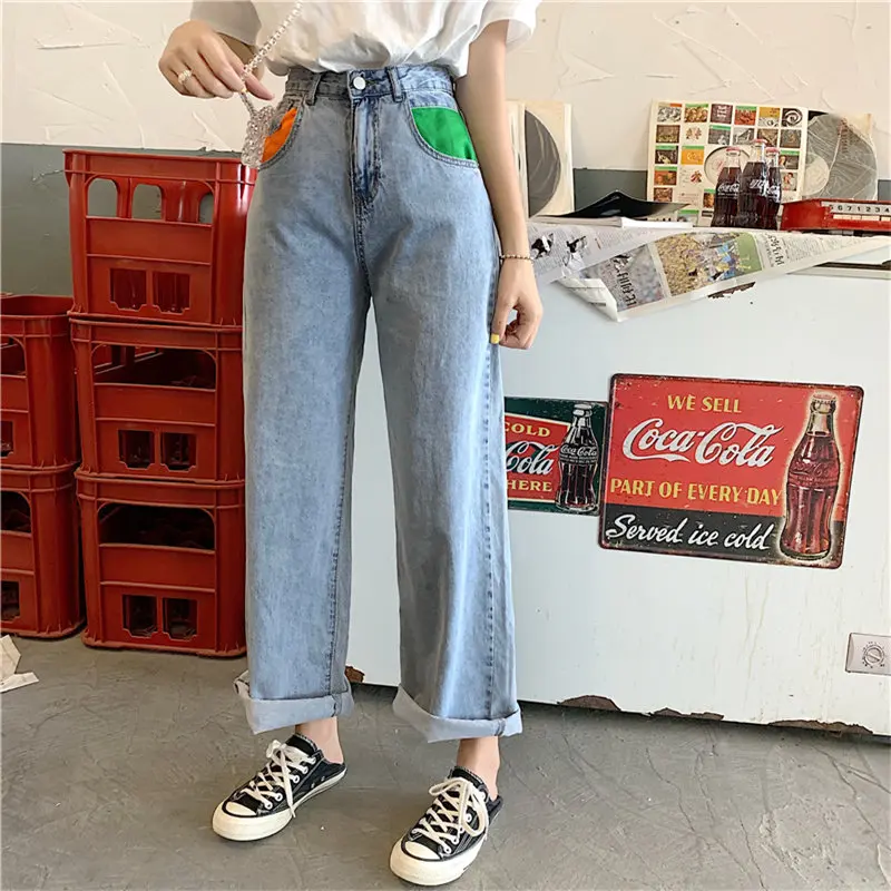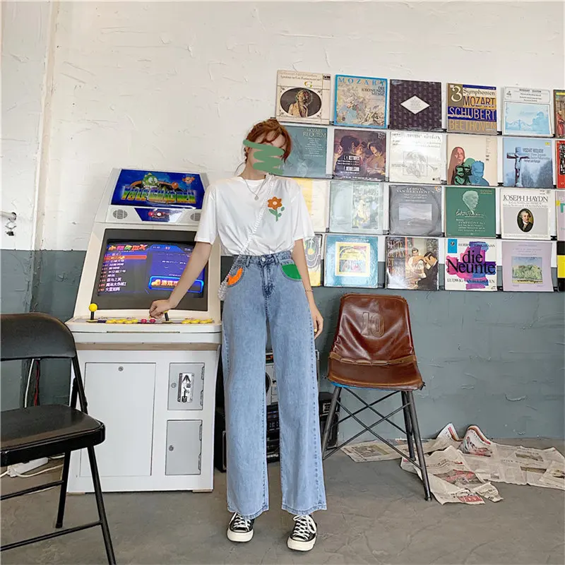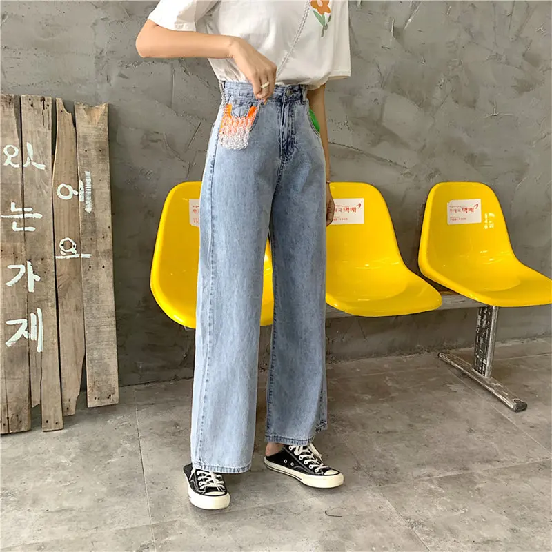 remarkable Alien Kitty Korea Style 2019 Summer New Fashion High Waist Jeans Femme Straight Loose Casual Wide L