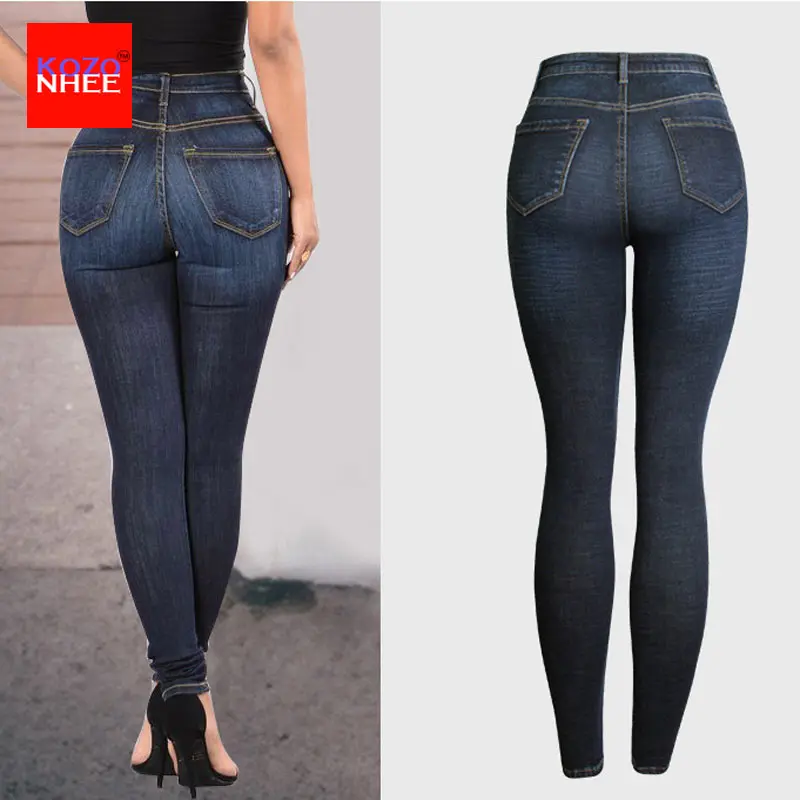 wonderful Plus Size Elastic Jeans For Women With High Waist Bamboo Fiber Stretching Black Jeans Skinny Pencil