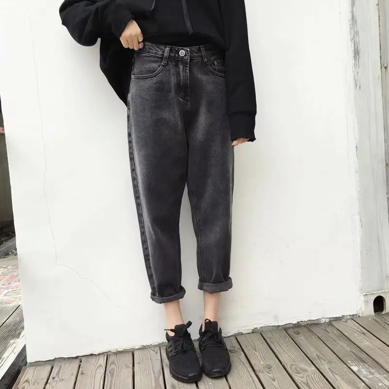 wonderful Vintage High Waist Jeans Woman 2019 Black Boyfriend Jeans for Women Streetwear Harem Denim Pants Fe